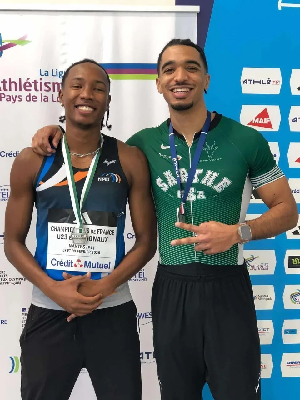 Cameron Ngo, ici avec Jérémie Lararaudeuse, peut afficher un grand sourire après sa médaille d’argent conquise au courage © Ouest-France