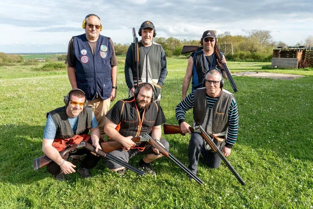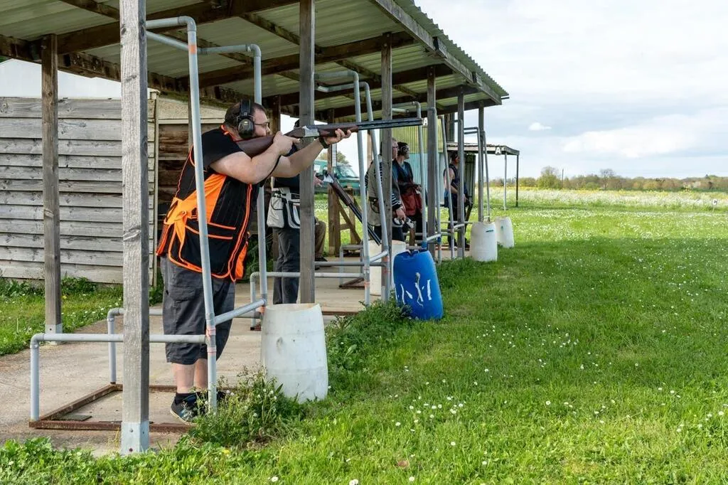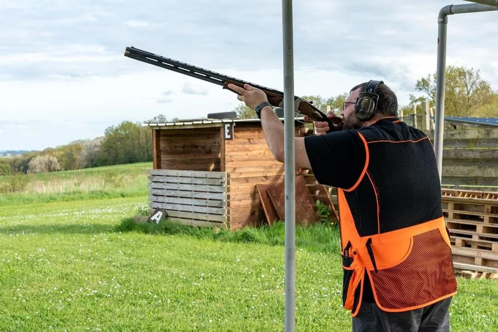 Assé-le-Boisne, jeudi 11 avril 2024. Le ball-trap exige beaucoup de concentration. Les tireurs n’ont que quelques secondes pour tirer sur des pigeons en argile qui semblent minuscules une fois propulsés dans les airs. © Le Maine Libre - Xavier SARRAT
