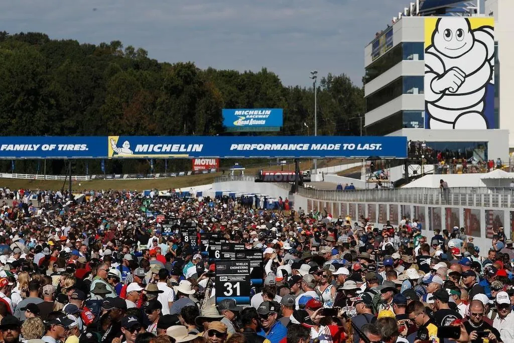 Au pied de la fameuse Michelin Tower, le public assiste en nombre à la mise en grille des voitures sur la piste. © IMSA – LAT Images