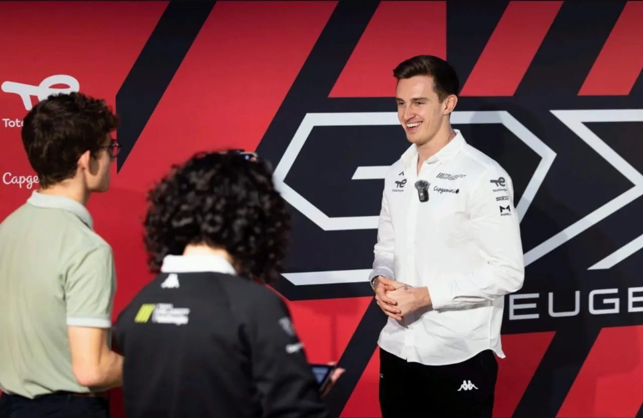 Théo Pourchaire lors de la présentation de la Peugeot 9X8 version 2026. © DPPI