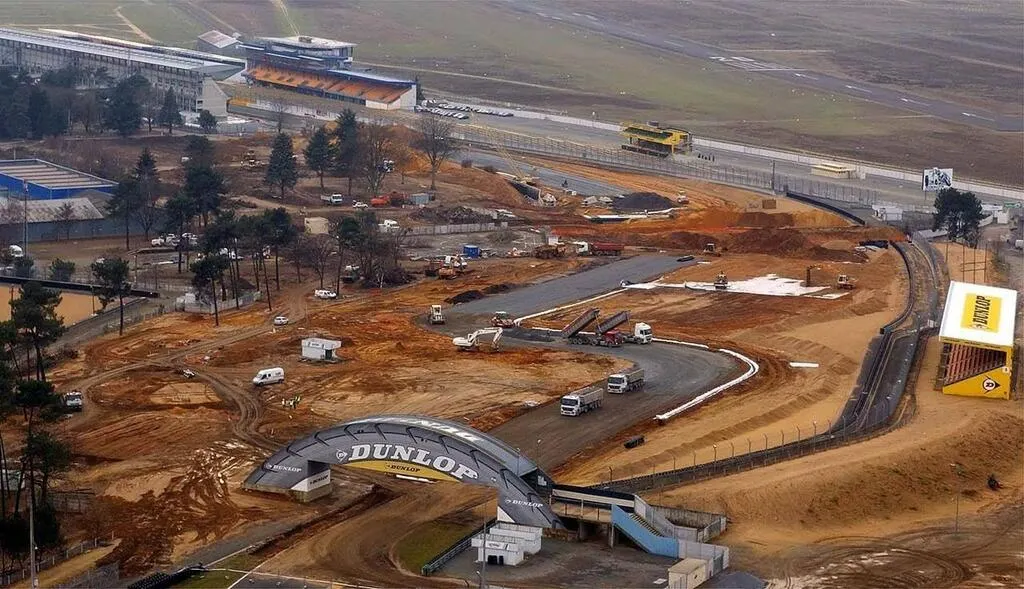 Travaux de la nouvelle courbe Dunlop le 16 janvier 2006. archives Le Maine Libre – Denis LAMBERT