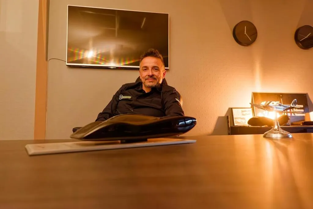 Jocelyn Pedrono, président de Pescarolo Sport dans son bureau de l’ITM Graduate School qui forme aux métiers de l’automobile, au Technoparc des 24 Heures du Mans. © Dominique Breugnot