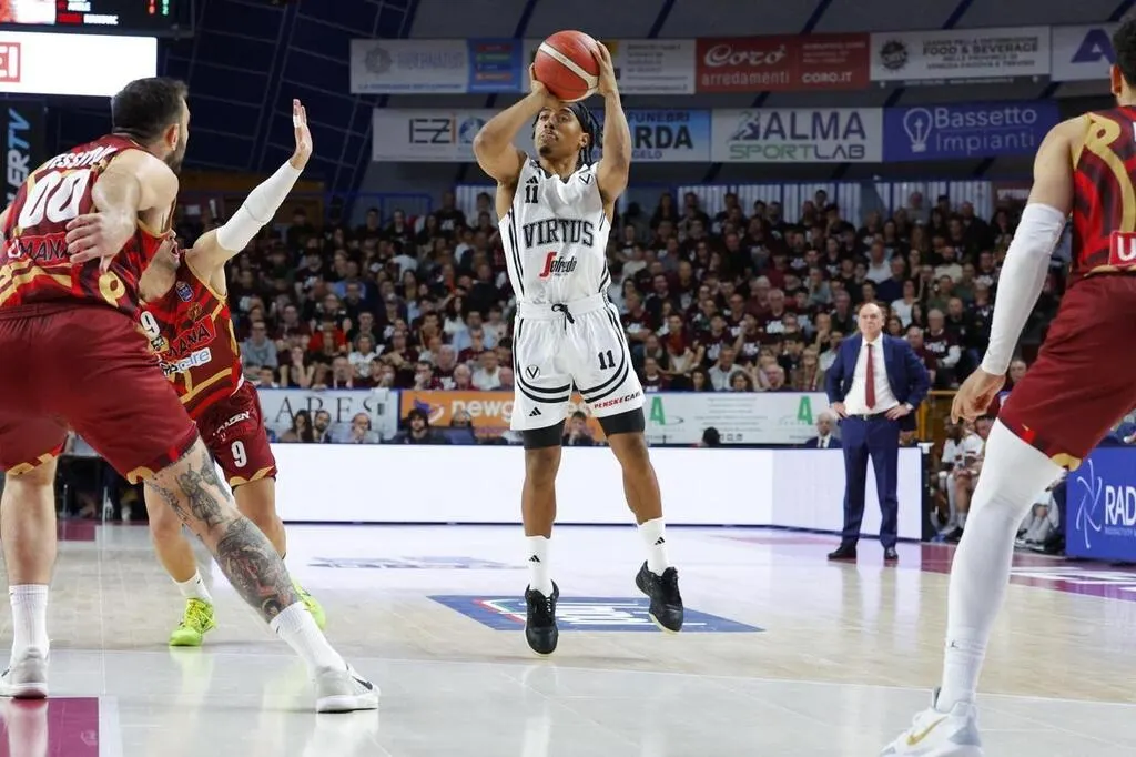 Après plusieurs mois en Espagne, Brandon Taylor a fini la saison en trombes avec la Virtus Bologne, devenant champion d’Italie. © NurPhoto via AFP