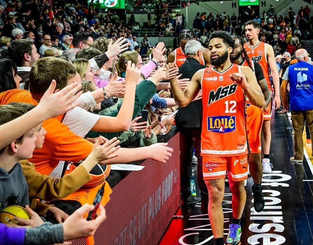 Trevor Hudgins après la victoire mancelle contre Cholet, en championnat, le 29 mars 2025 à Antarès. © Photo : Le Maine Libre - Yvon LOUÉ