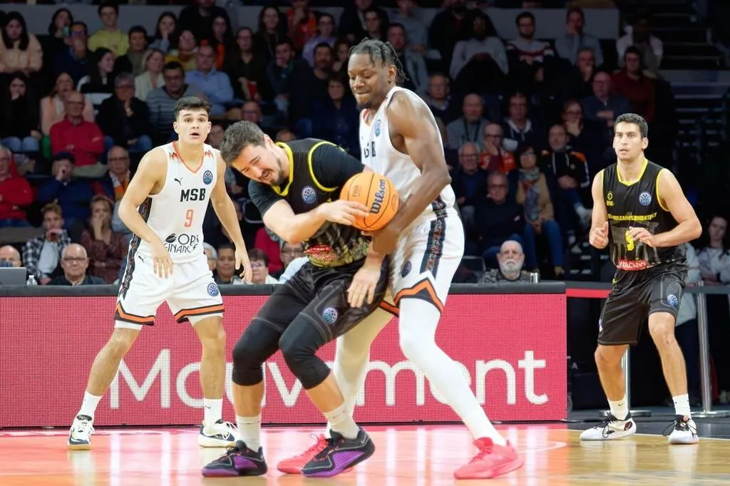 Léopold Delaunay et Wilfried Yeguete (maillots blancs) vont retrouver la Ligue des champions de basket-ball avec le MSB. © Archives Dominique Breugnot