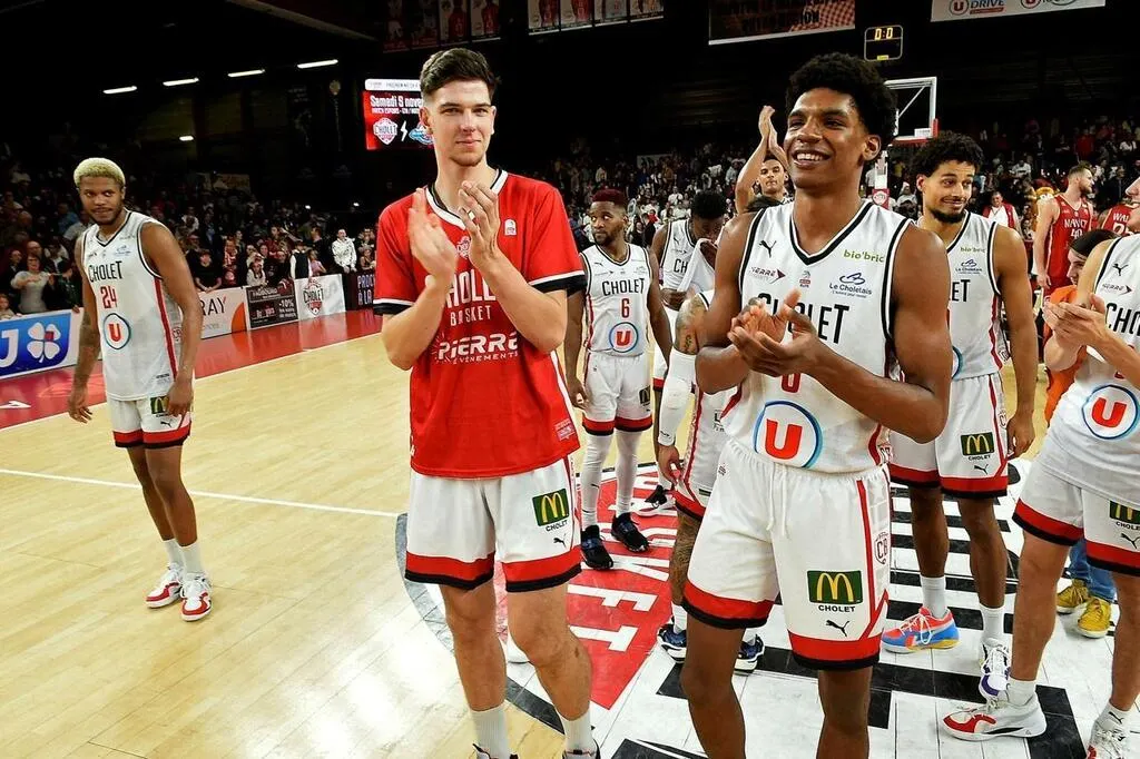 Lucas Dufeal (à droite) lorsqu’il évoluait avec les espoirs de Cholet basket, en 2022. © Archives Le Courrier de l’Ouest - Étienne LIZAMBARD