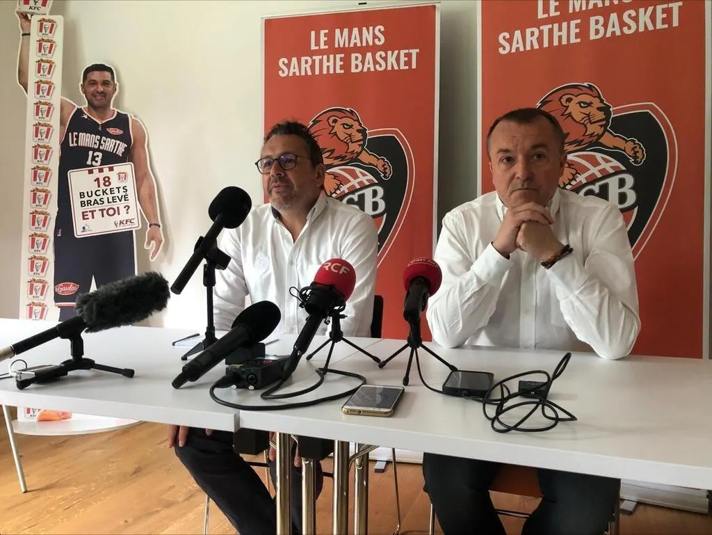 Christophe Le Bouille (à gauche) et Vincent Loriot à la traditionnelle conférence de presse de fin de saison. © Le Maine Libre