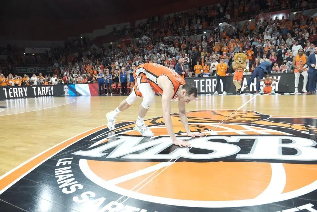 Terry Tarpey a dit au revoir au public manceau en embrassant le parquet d’Antarès. © Dominique Breugnot
