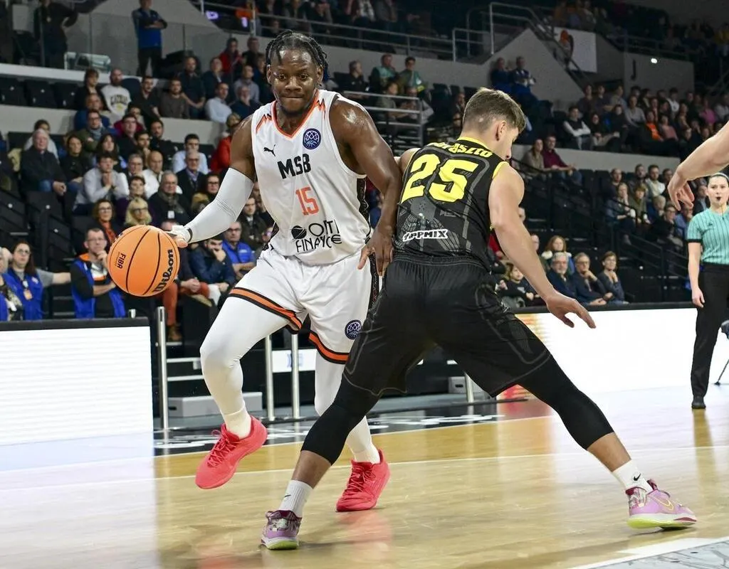Le capitaine manceau Wilfried Yeguete, le 7 novembre 2023, lors de la réception des Hongrois de Szombathely, en phase de poule de la Ligue des champions de basket 2023-2024. © Photo : Le Maine Libre - Yvon LOUÉ