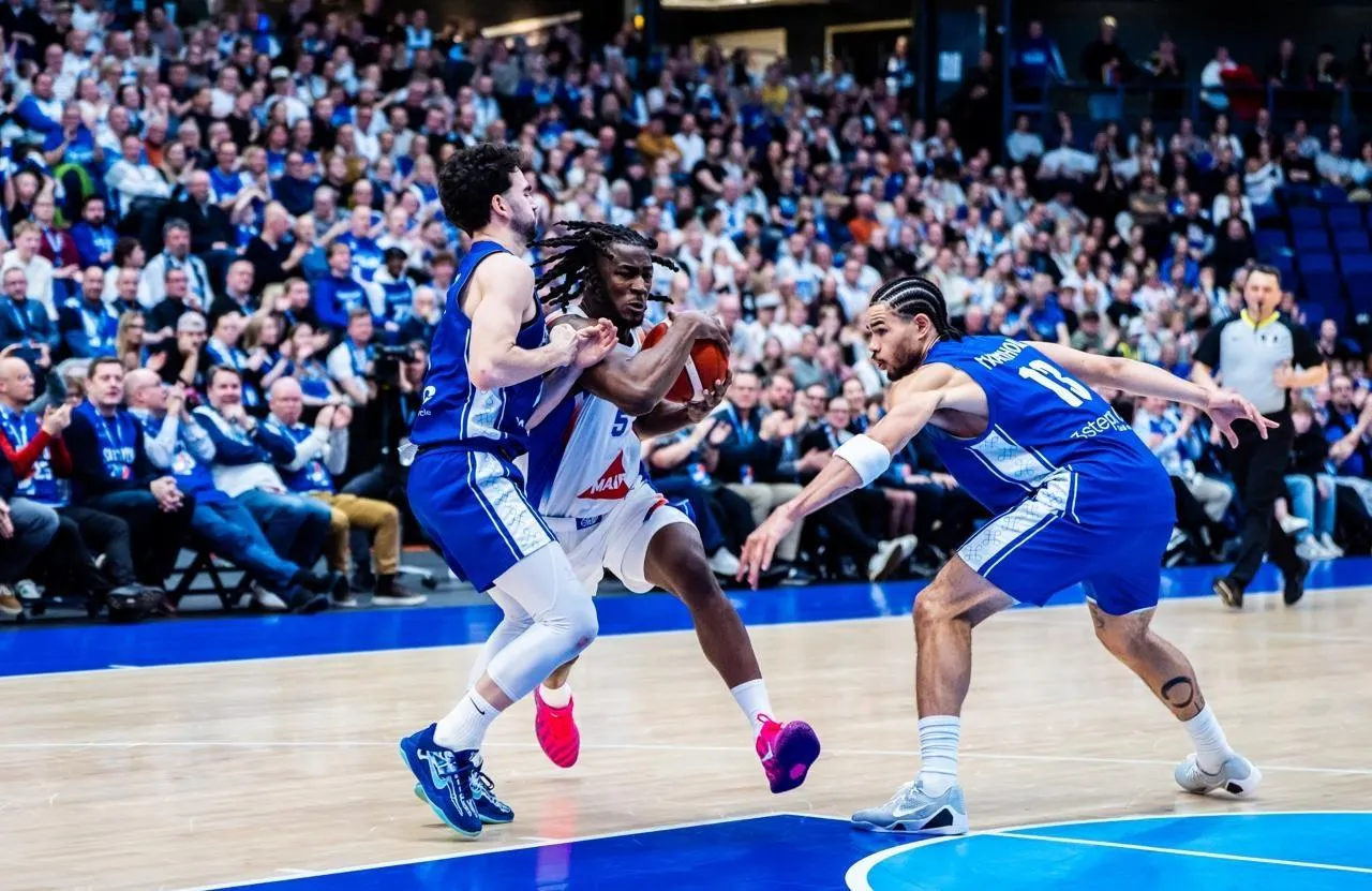 Adam Mokoka, ici à Espoo face à la Finlande, le 1er décembre 2025 en qualifications à la Coupe du monde 2027, fait partie des quatorze joueurs convoqués pour la prochaine fenêtre de qualification lors de laquelle les Bleus viendront au Mans. © FFBB - Samira Lee