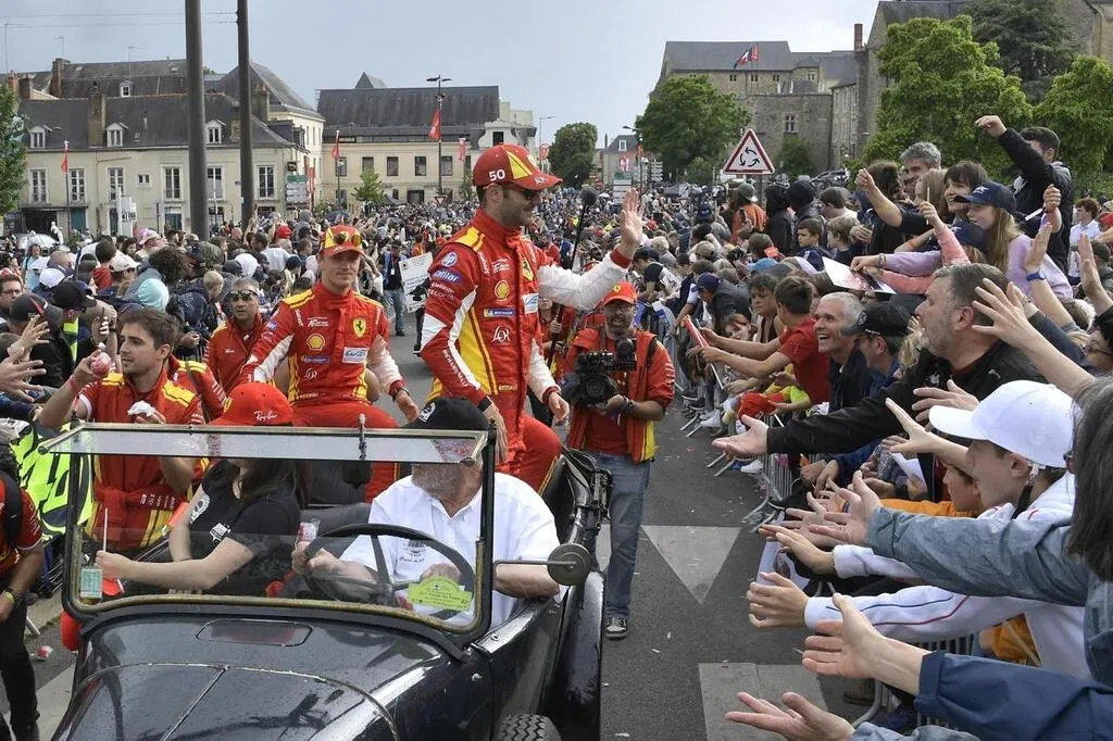 La parade des pilotes, vendredi 14 juin 2024 au Mans (Sarthe). Une manifestation gratuite qui rassemble des milliers de spectateurs dans le centre-ville, la veille du départ de la course automobile Heures du Mans. © Marc Ollivier/Ouest-France