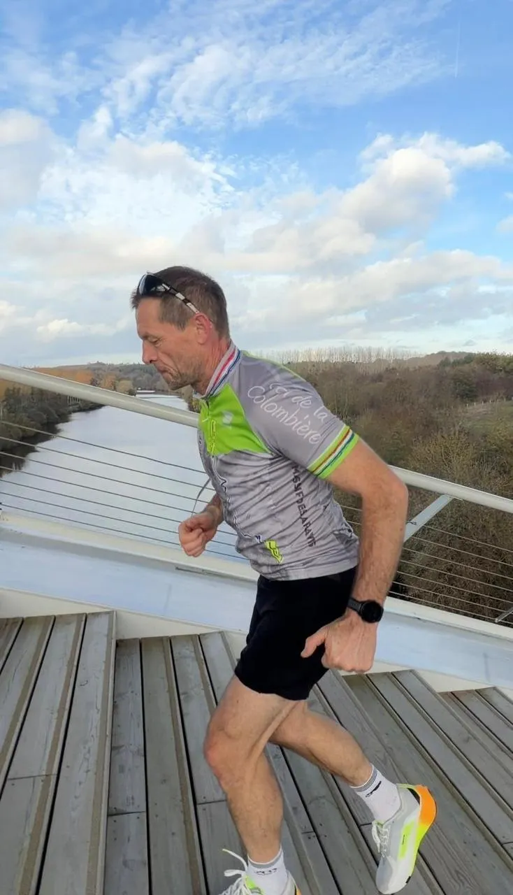 Fabrice Didier, athlète sarthois, gravira les escaliers du viaduc de Château-Gontier sur une distance de 42 km, samedi 29 novembre 2025. © Lucie Didier