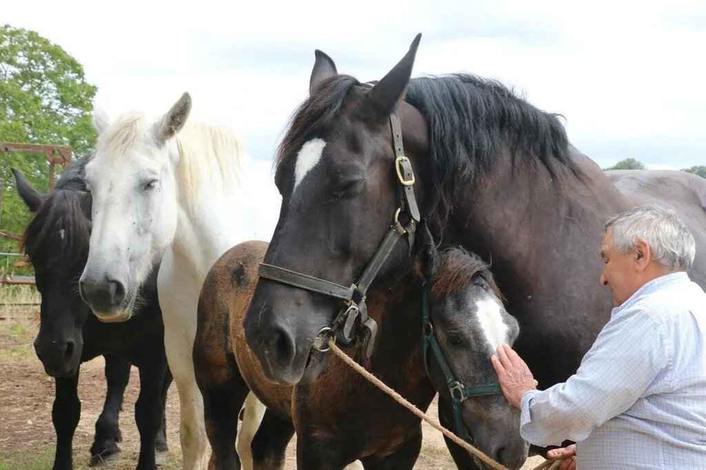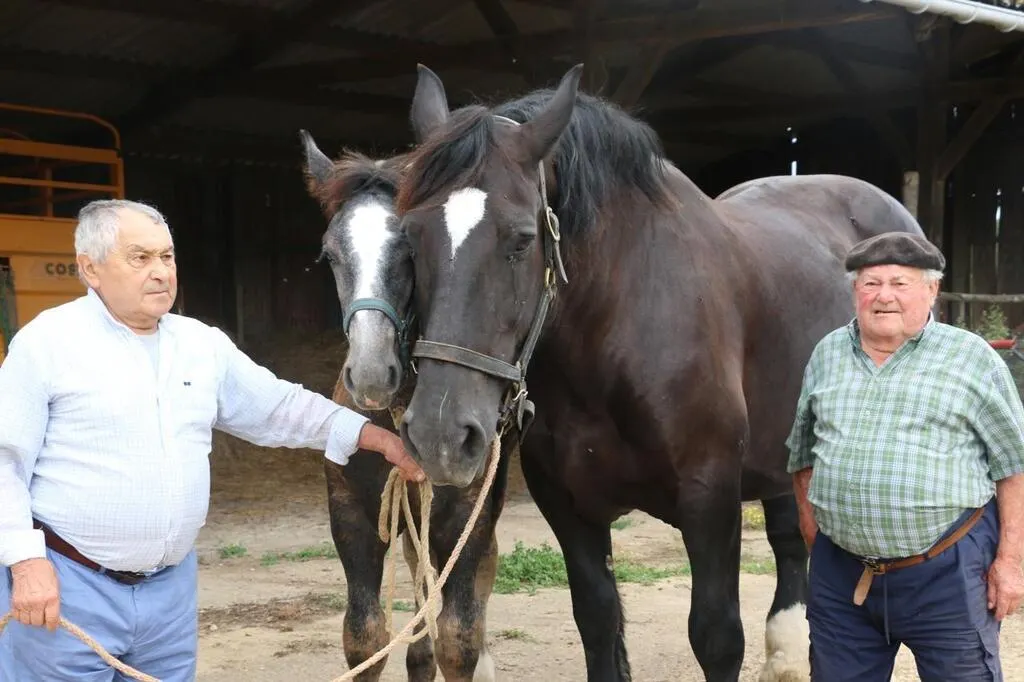 Daniel (78 ans) et Roland (91 ans) font partie de la famille Corvaisier qui élève des percherons depuis les années 1890. © Ouest-France
