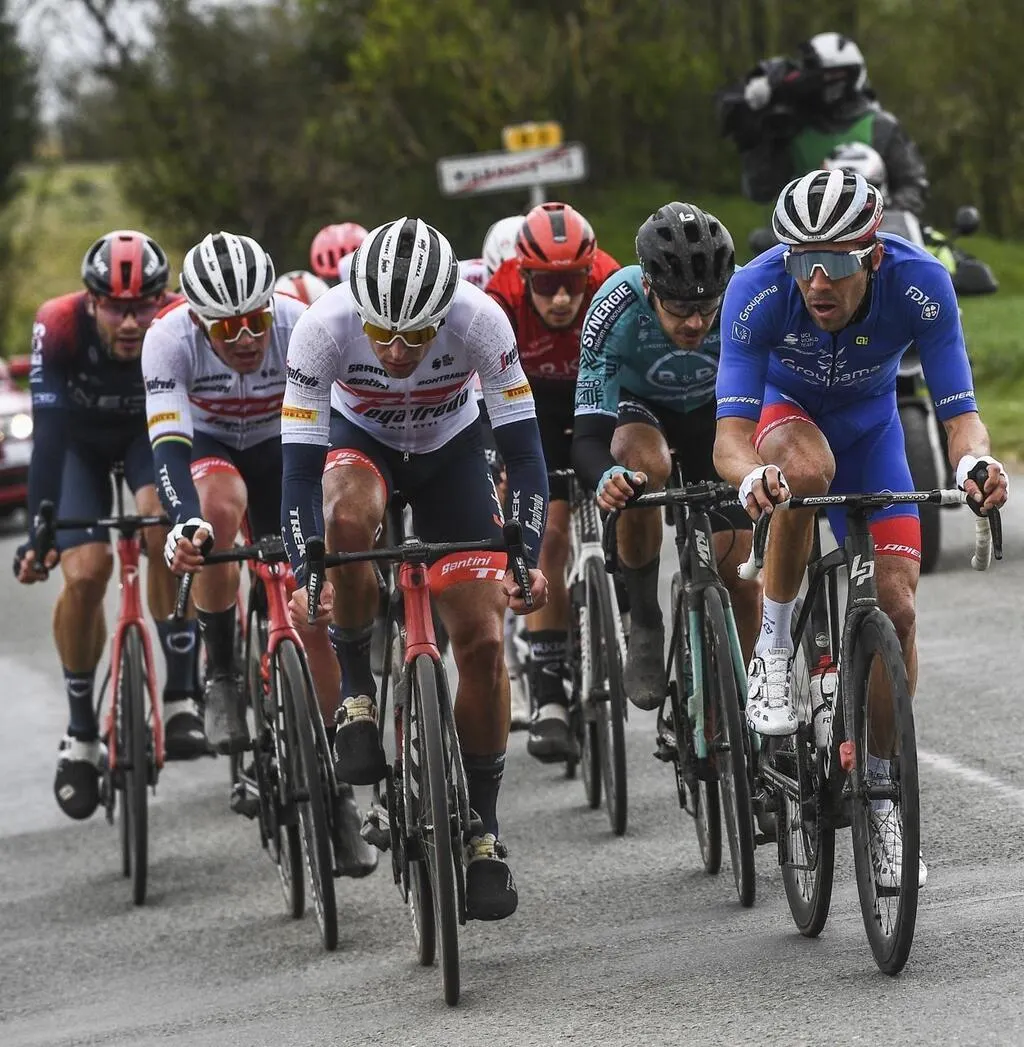 Avant le départ de Mamers, ce mardi 5 avril 2022, pour la première étape du Circuit de la Sarthe, Thibaut Pinot avait annoncé qu’il n’était pas seulement là pour retrouver du rythme. 7e du jour, le grimpeur de Groupama-FDJ a été très remuant.