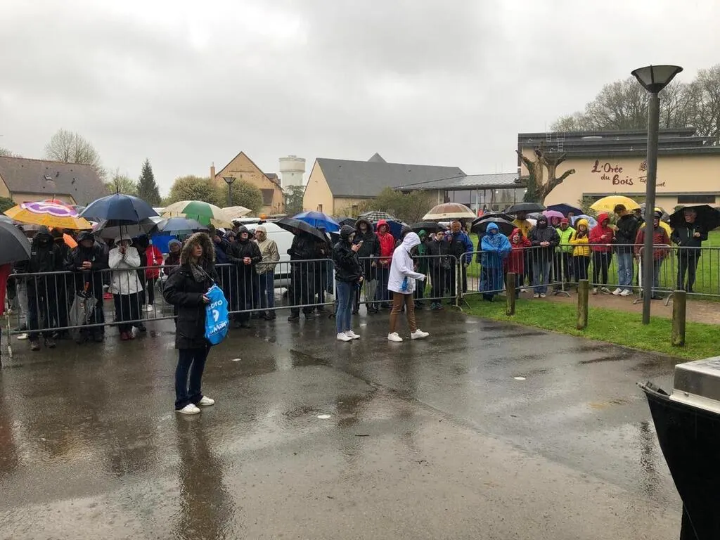 Le public sous la pluie à La Chapelle-Saint-Aubin pour le départ de la dernière étape du Circuit. Le Maine Libre