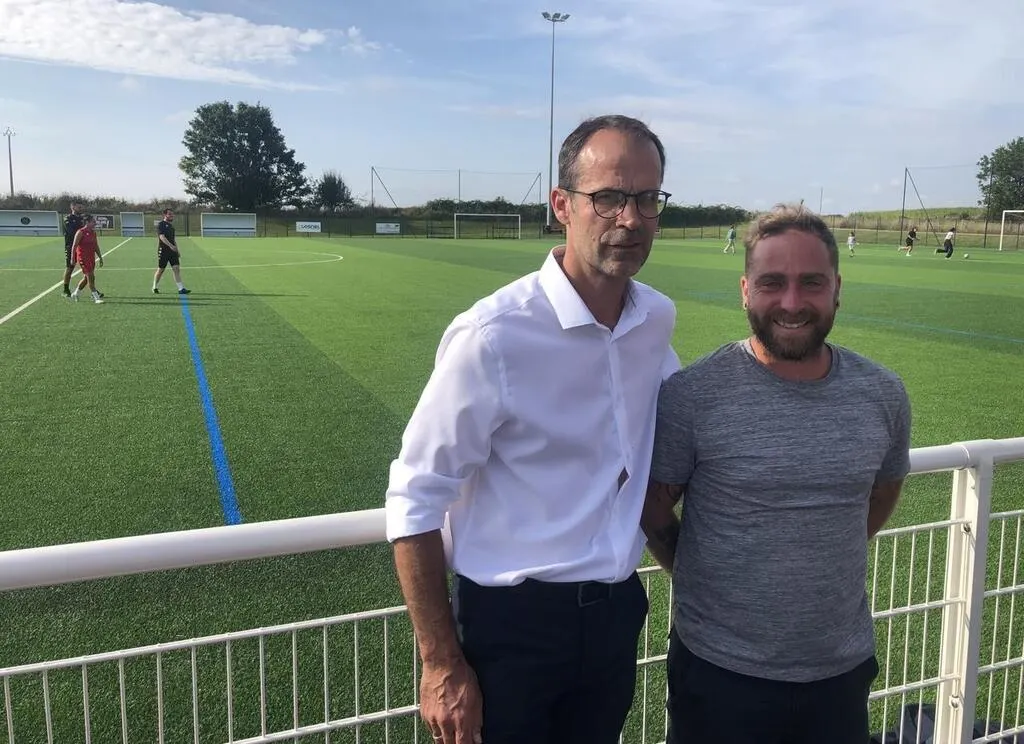 Le président, Sébastien Cosnet (à g.) et l’entraîneur des seniors, Damien Dommé (à dr.) s’apprêtent à recevoir Rouillon pour le deuxième tour de Coupe de France ce dimanche 1er septembre 2024. © Le Maine Libre