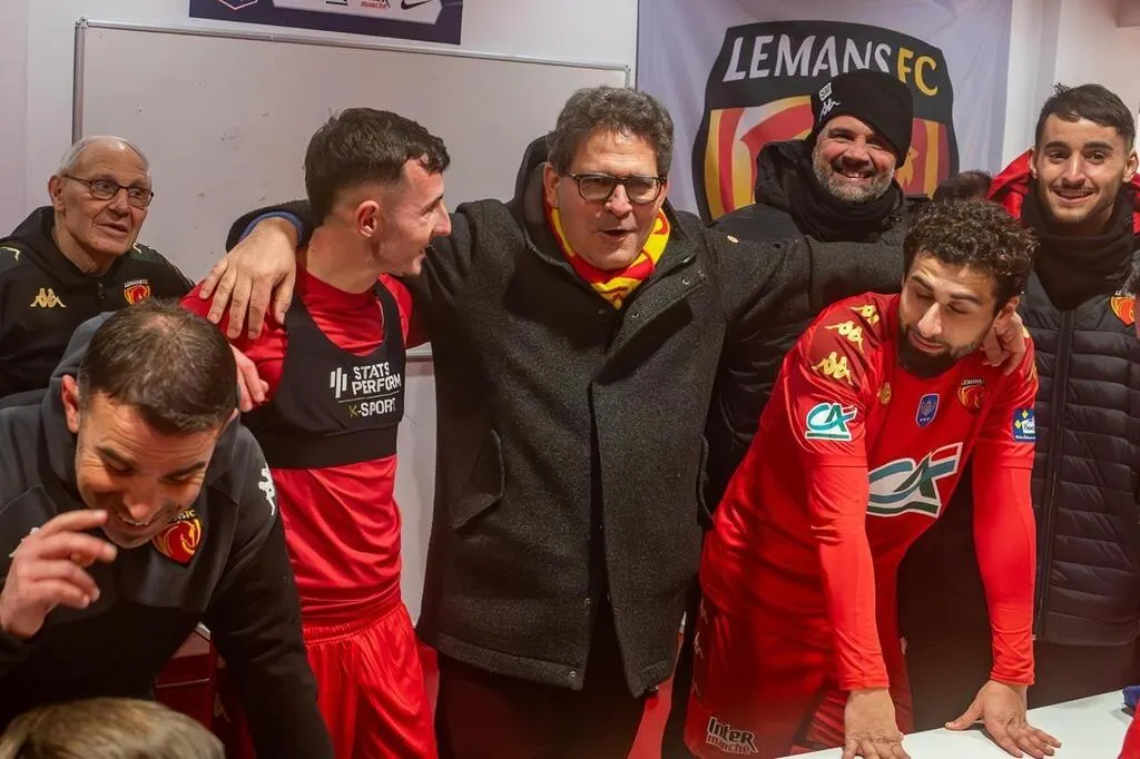 Après leur victoire contre Valenciennes, les Manceaux avaient chanté dans le vestiaire pour les 62 ans du président, Thierry Gomez. La Coupe de France lui offre le cadeau de recevoir le Paris Saint-Germain en 8es de finale. © Arnaud Despelchain/Ouest-France