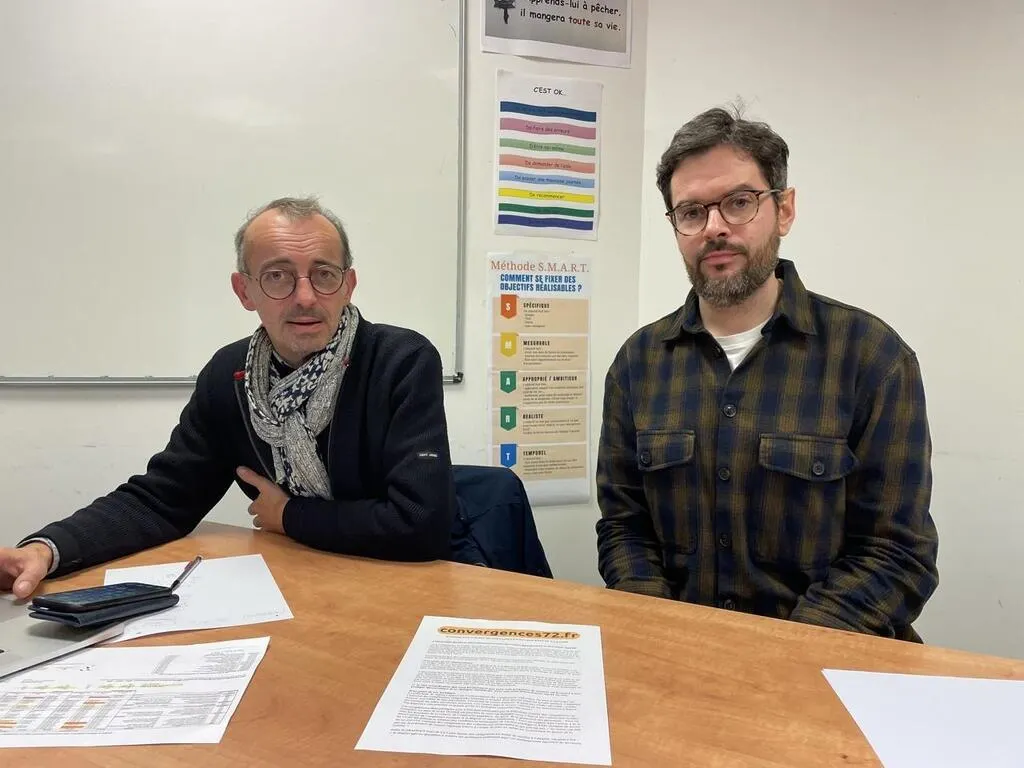 Laurent Manoury et Alan Durand, du collectif Convergences 72, se battent contre les coupes budgétaires annoncées par la Région. © Le Maine Libre