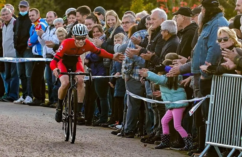 Dimanche 7 novembre 2021, à Champagné. Yvonnick Lauger du VSF La Ferté-Bernard, décroche le titre de champion départemental senior de cyclo-cross. Une discipline qui a retrouvé les pelotons plutôt fournis. © ARNAUD DESPELCHAIN
