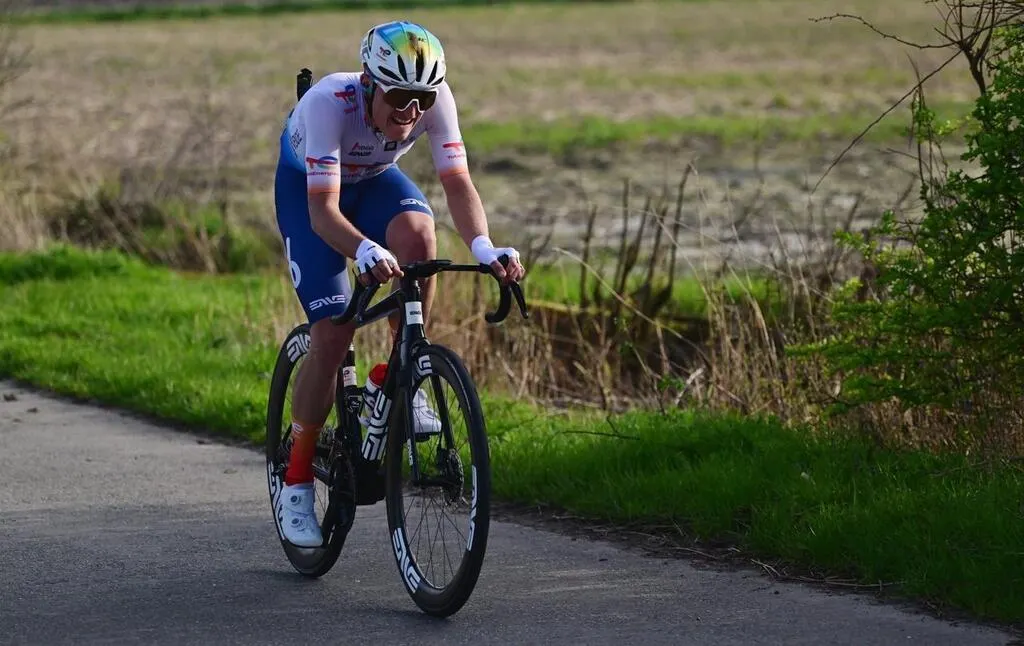 Souvent à l’attaque comme ici à la Classic Brugge-De Panne en mars, Thomas Gachignard a pris une nouvelle dimension en 2024. © BELGA/MAXPPP/LAURIE DIEFFEMBACQ