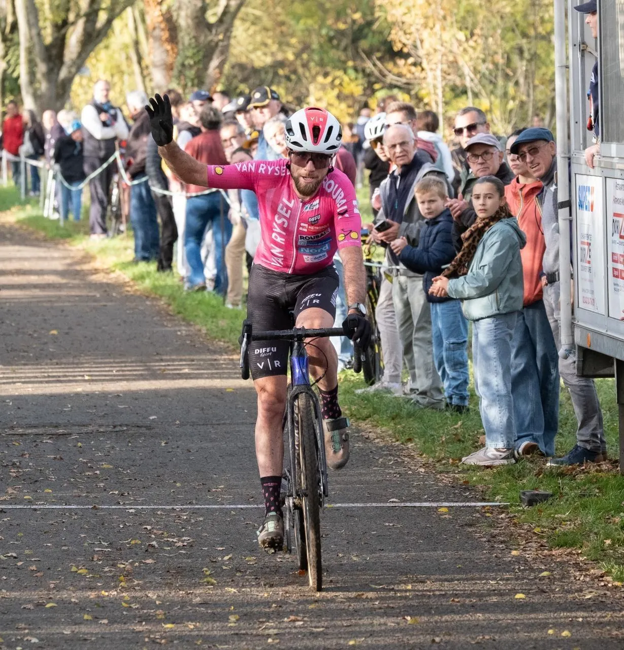 Dans la catégorie reine, l’absence des principaux leaders sarthois et le forfait d’Yvonnick Lauger ont laissé le champ libre à Célestin Guillon, déjà vainqueur le week-end précédent à Cherré. Le cycliste manceau professionnel, qui cherche toujours un contrat pour la saison 2026 après son non-renouvellement à Van Rysel-Roubaix, garde ainsi le rythme avant les manches nationales de cyclo-cross qu’il compte disputer cet hiver. Ce samedi sous le soleil manceau, Célestin n’a pas laissé planer le doute longtemps sur l’issue de la course.