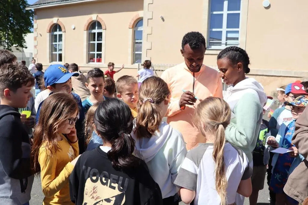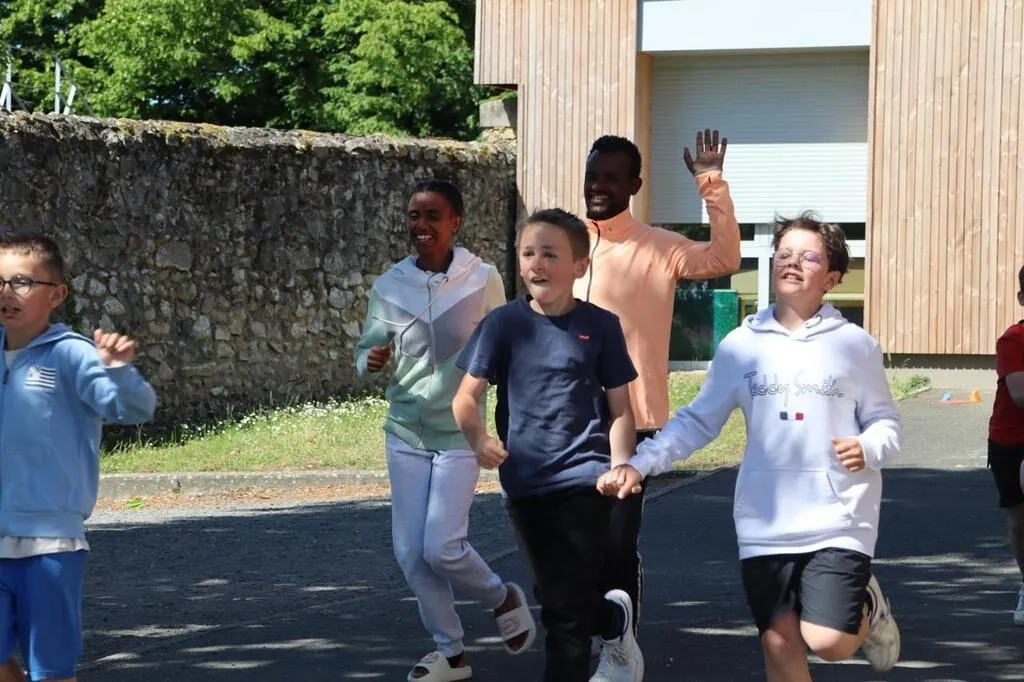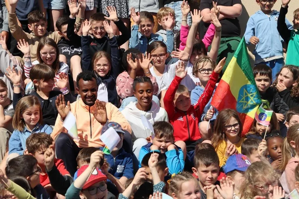 Depuis le début de l’année scolaire 2024-2025, les enfants de l’école Les Marronniers à Parcé-sur-Sarthe, une commune située non loin de Sablé-sur-Sarthe, sont en lien avec une école éthiopienne par le biais de l’association angevine Avec l’Éthiopie. Jeudi 15 mai 2025, ils ont eu la chance d’accueillir l’athlète Yayesh Getu et son guide Kindu Sisay, médaillés d’or aux Jeux Paralympiques de Paris.