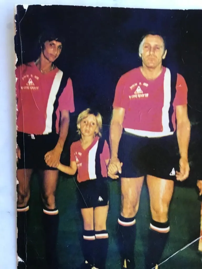 Serge Roy (à droite) aux côtés de Johan Cruyff (à gauche) et son fils, Eric. © DR
