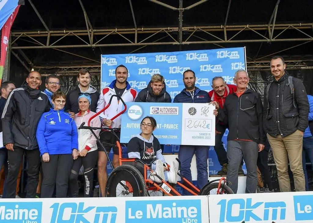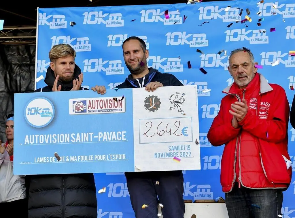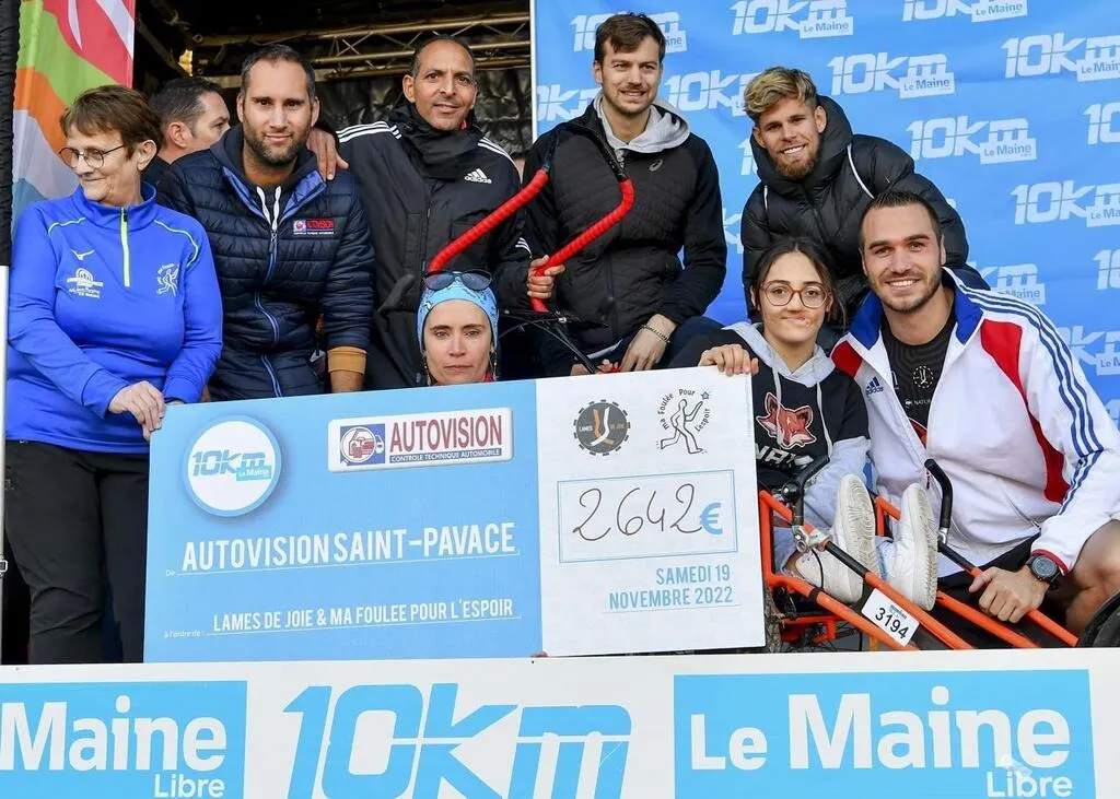 Après le défi de Jimmy Gressier, Autovision de Saint-Pavace a remis un chèque de 2 642 € à deux associations. YVON LOUE
