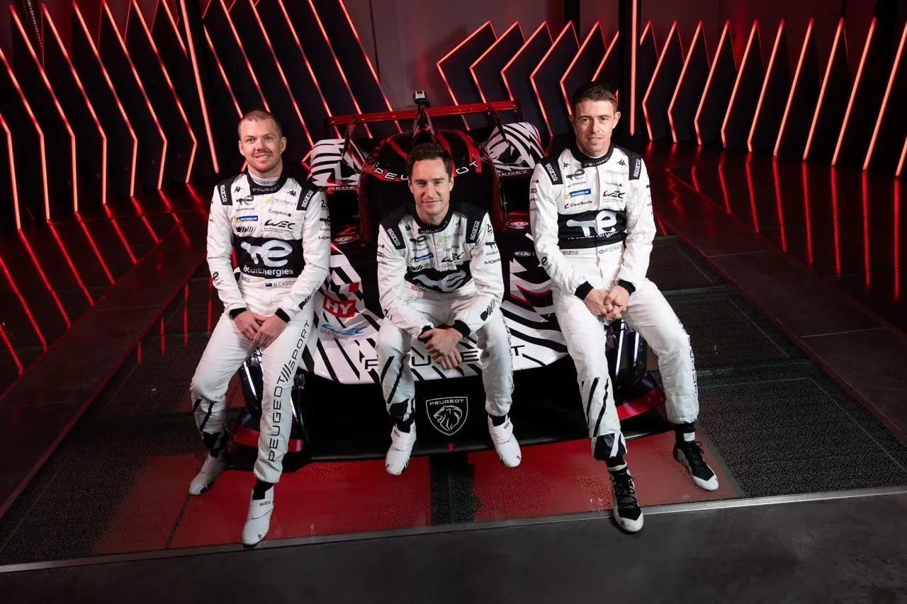 De gauche à droite : Nick Cassidy, Stoffel Vandoorne et Paul Di Resta, les trois pilotes de la Peugeot 9X8 n°93 pour la saison 2026. DPPI