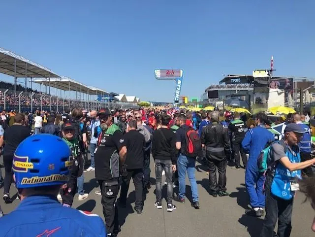 Selon la tradition, la piste est envahie avant le départ de la course. Le Maine Libre
