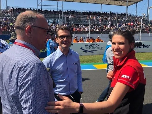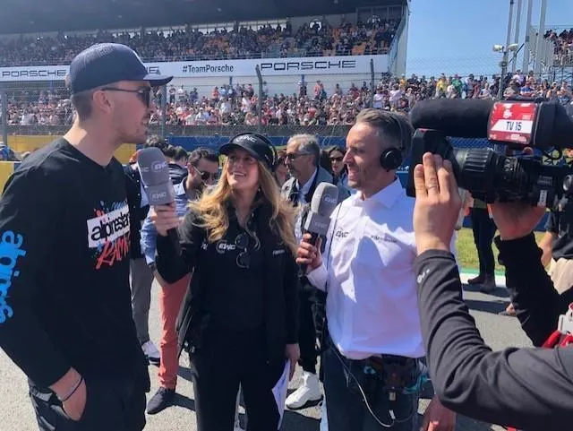Loris Baz, en spectateur, sollicité par les medias. Le Maine Libre