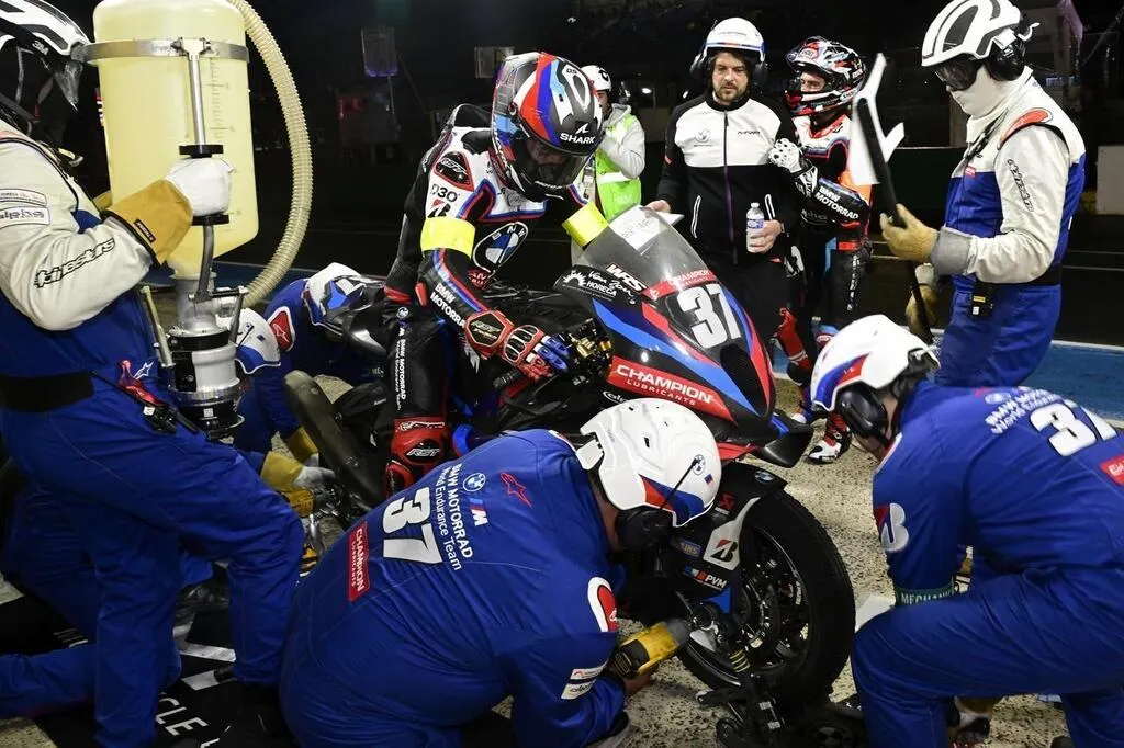 La BMW n°37 du Motorrad World Endurance team, pilotée par Steven Odendaal, Markus Reiterberger et Sylvain Guintoli, reste sur le podium provisoire de la course après un début de course en tête.