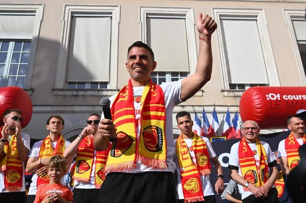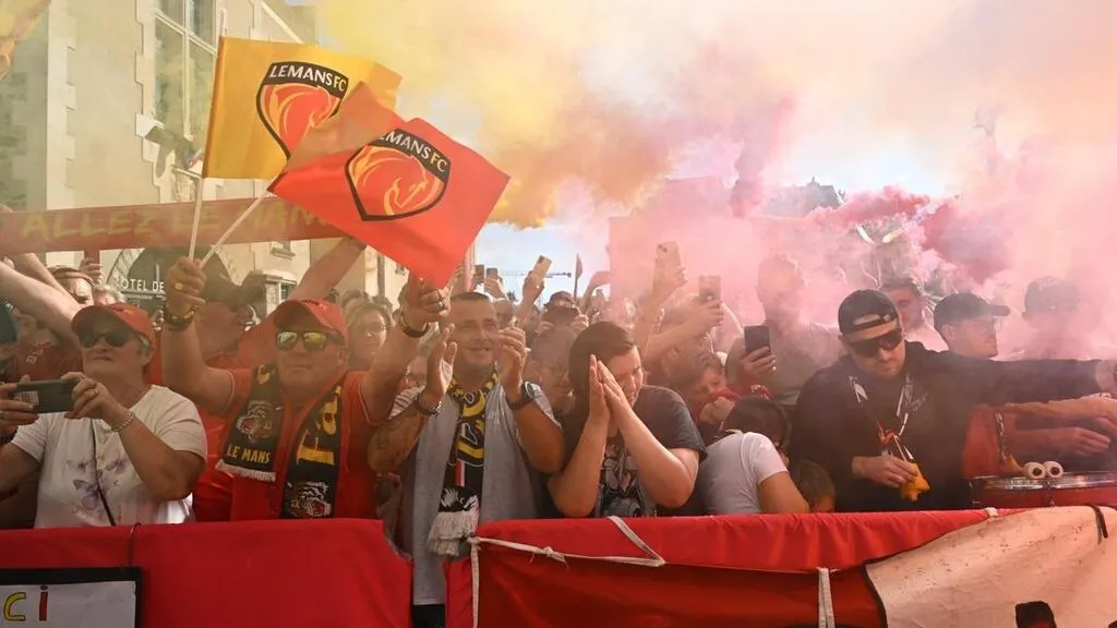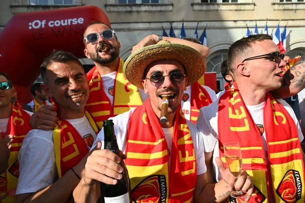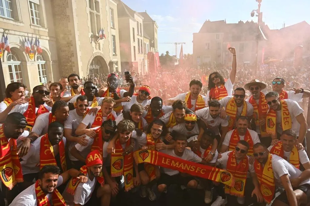 Plusieurs centaines de supporters ont célébré la montée du Mans FC en Ligue 2 lundi 19 mai 2025 au soir, sur la place de la mairie, avec déjà dans un coin de la tête la bataille pour le maintien la saison prochaine.