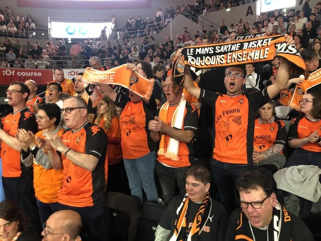 18 h et des poussières, ce samedi 19 avril 2025. Dans les tribunes de la salle Antarès, au Mans (Sarthe), une meute orangée chante à tue-tête pour encourager les joueurs du MSB, qui entament leur