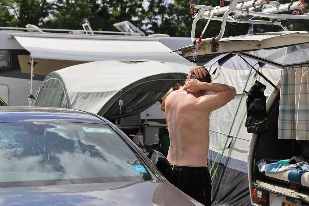 Même au milieu des supercars, innombrables au camping du Houx, la douche du matin, c’est comme une forme de renaissance… Ouest-France