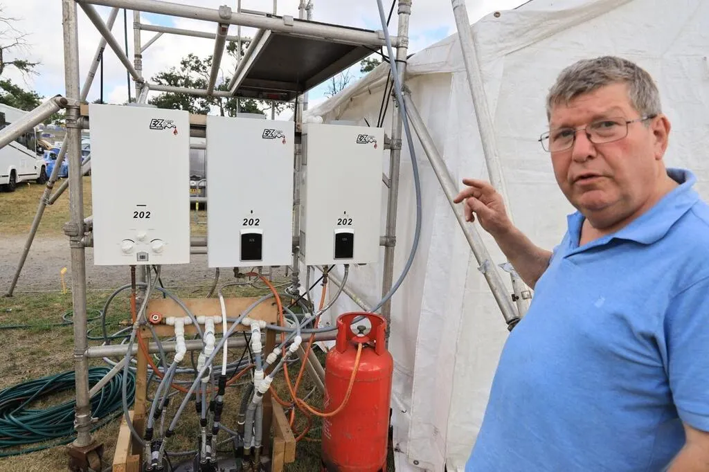 Peter explique que ses chauffe-eaux, qui sont interdits d’installation hors d’une construction, viennent directement des USA. C’est parfait pour la cambuse de son campement, qu’il partage avec une trentaine d’amis. Ouest-France