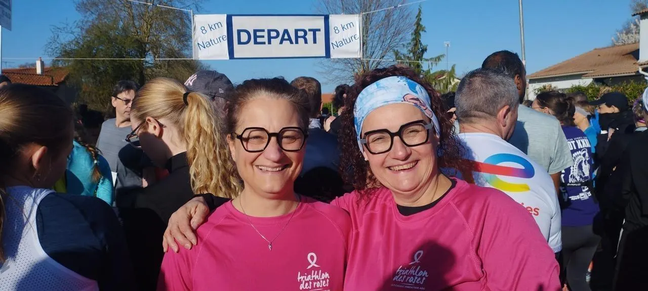 Laetitia et Marilyne, sensibilisées à la lutte contre le cancer du sein, poursuivent leur effort au-delà du triathlon des Roses. Le 8,2 km de Nuaillé est leur premier défi officiel. Ouest-France