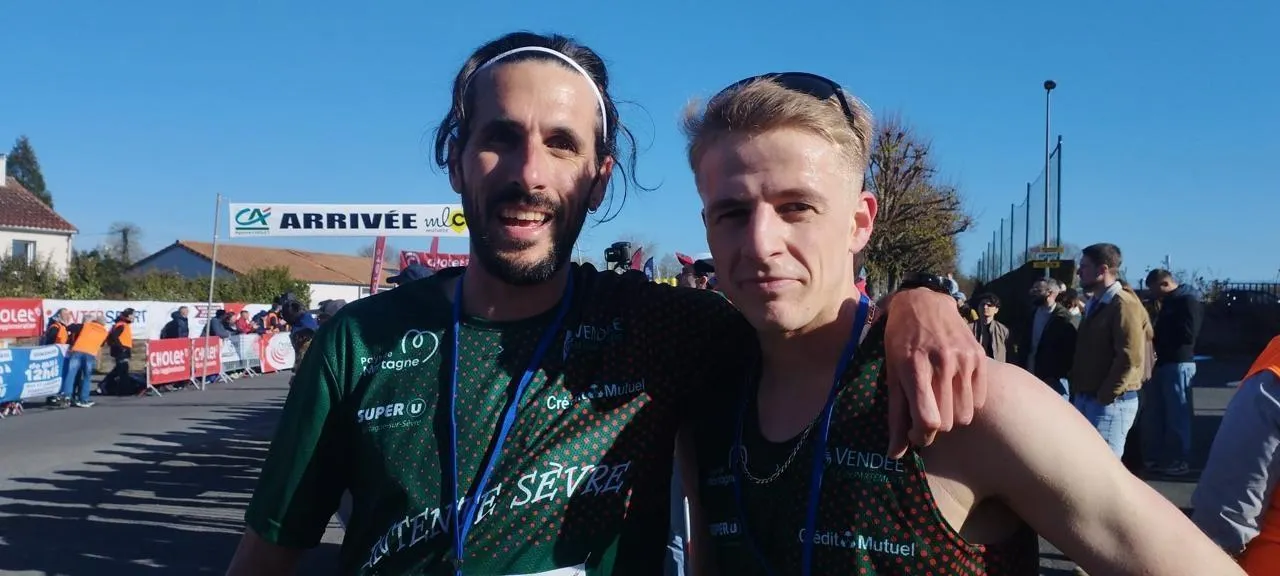 Les deux premiers du 8,2 km nature 2026 : Alexis Delahaye, 25 ans, devant Jérémy Graveleau, 40 ans. Ouest-France