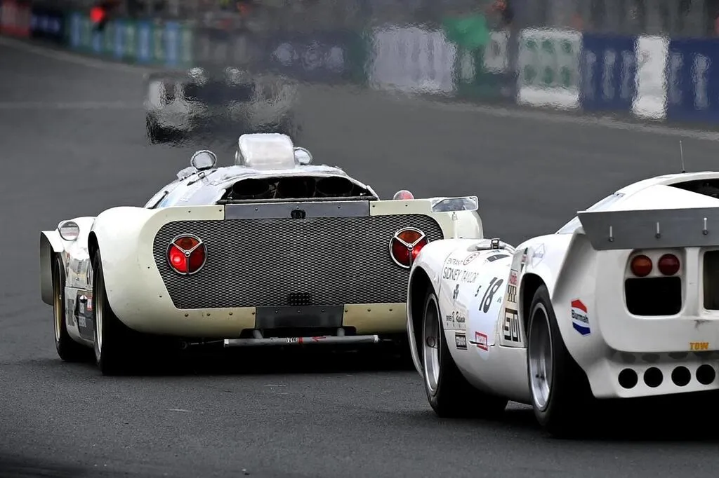 Les voitures ont pris la piste, au Mans Classic. Ici une Lola T70. Marc Ollivier