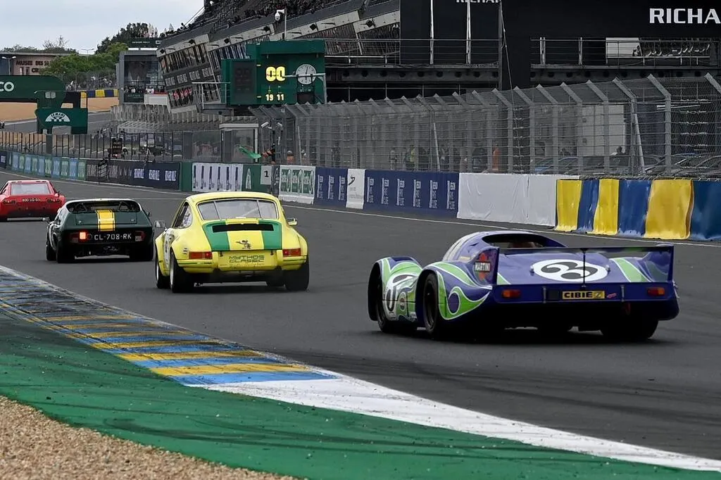 Les voitures ont pris la piste, au Mans Classic. Ici, la Porsche 917 dite Psychédélique. Marc Ollivier