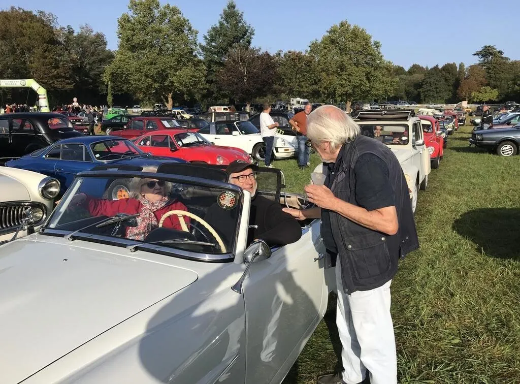 Les conducteurs et passagers avaient le sourire lors de la balade de la bourse d’échange, organisée par le Club rétro décalé, dimanche 8 octobre 2023 à Bazouges-Cré-sur-Loir. © Le Maine Libre