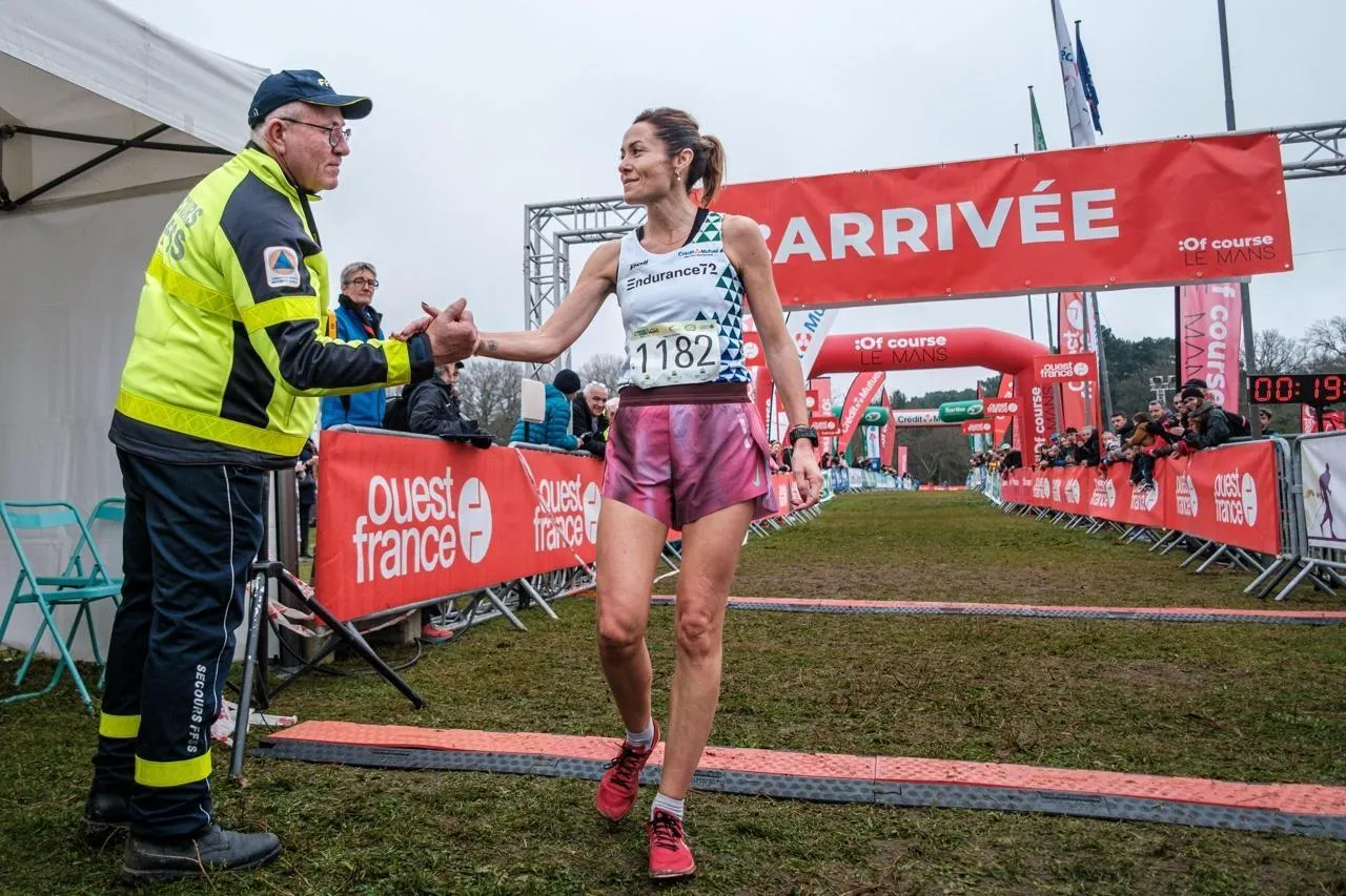 Vincianne Cussot, du club Endurance 72, a remporté la course des 5 km féminins en 19 minutes et 37 secondes, samedi. Simon Torlotin / Ouest-France