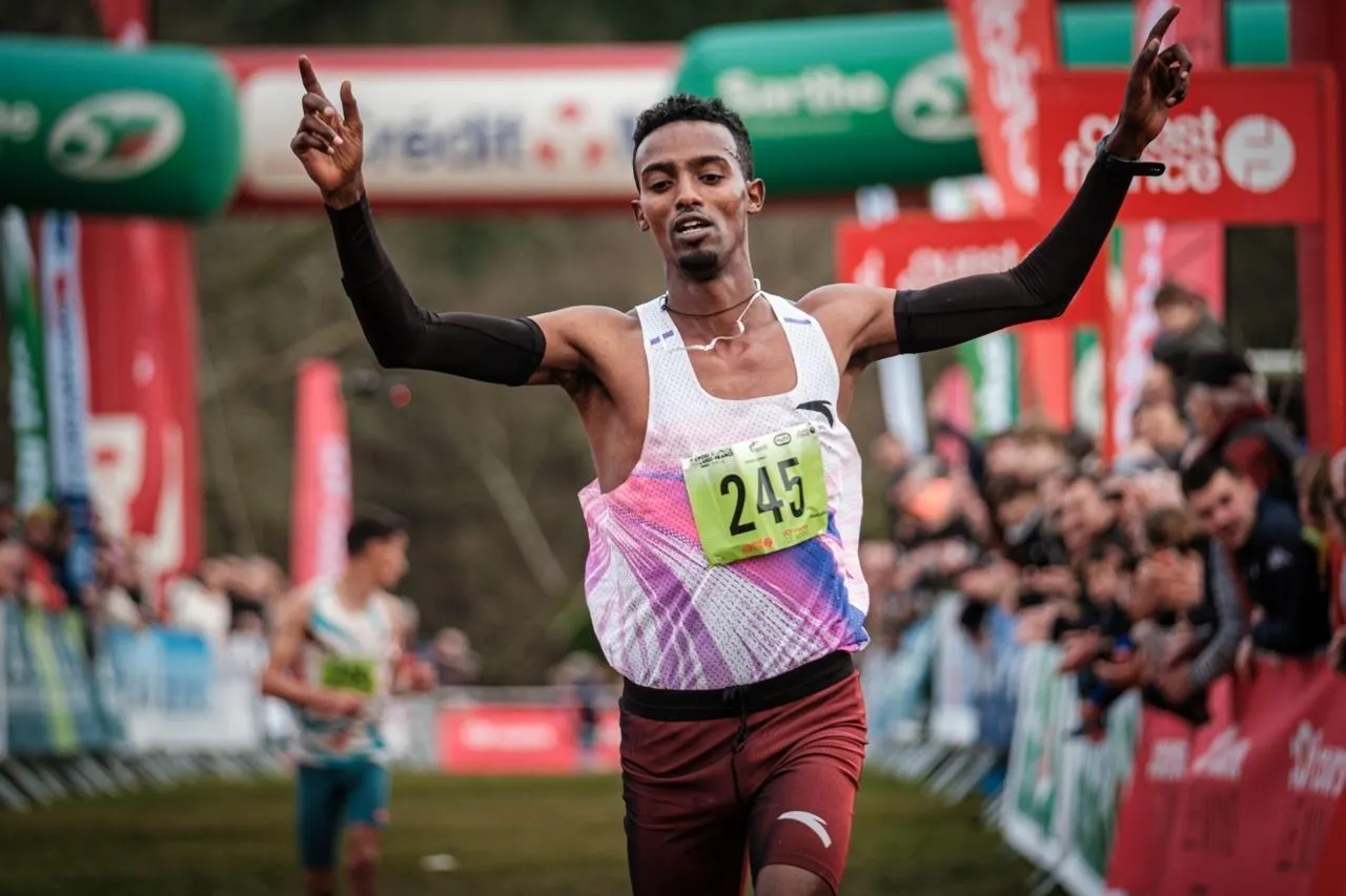 Le vainqueur du cross long Gedamu Getinet Mele, a terminé le parcours de 6,9 km en 19 minutes et 54 secondes. Simon Torlotin / Ouest-France