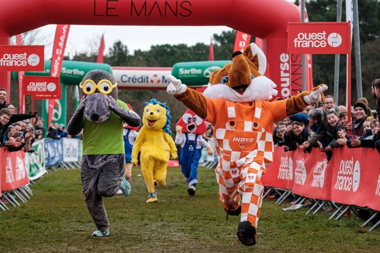La course des mascottes a amusé les jeunes coureurs qui venaient de terminer la boucle des familles. Simon Torlotin / Ouest-France
