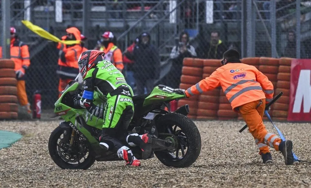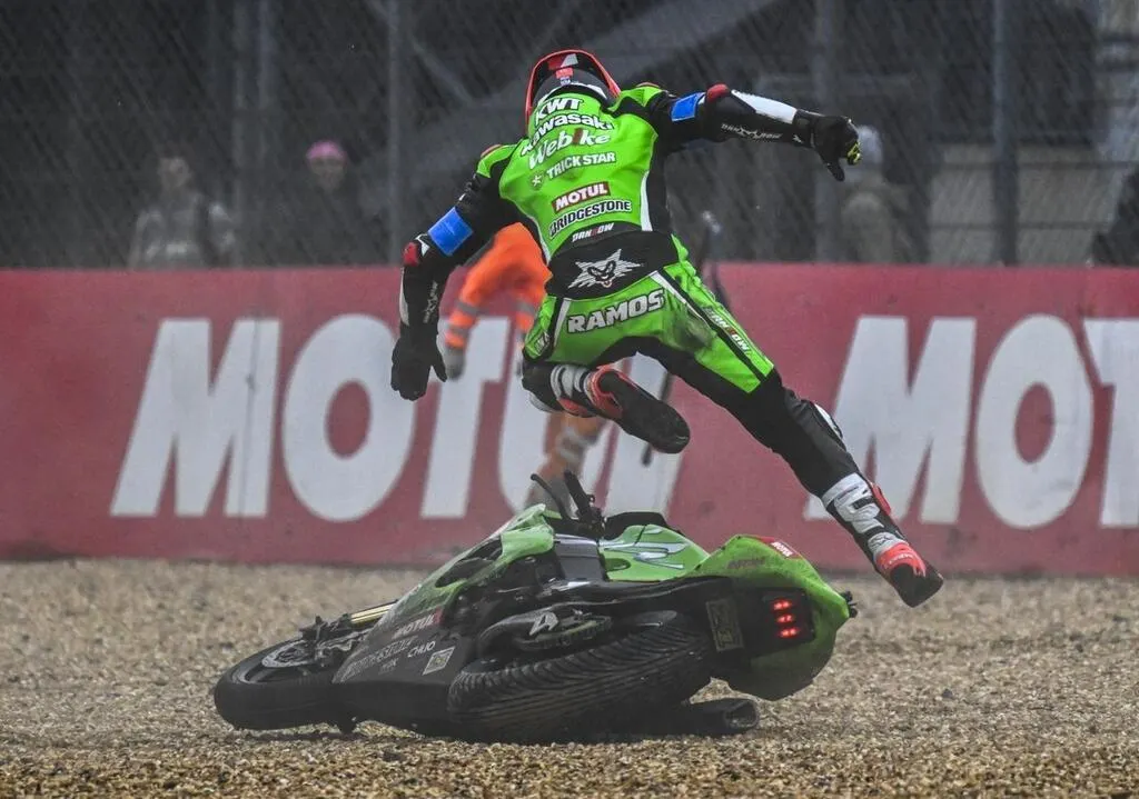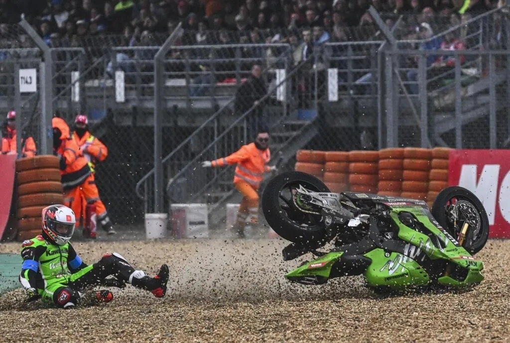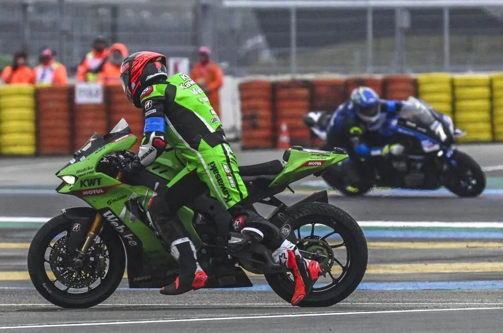 Ce dimanche 20 avril 2025, la Kawasaki Webike Trickstar n° 11 a chuté à cause de la pluie au virage du raccordement. Une heure seulement avant l’arrivée et alors qu’elle menait la course depuis un long moment. Un instant décisif capté par notre photographe Denis Lambert.
