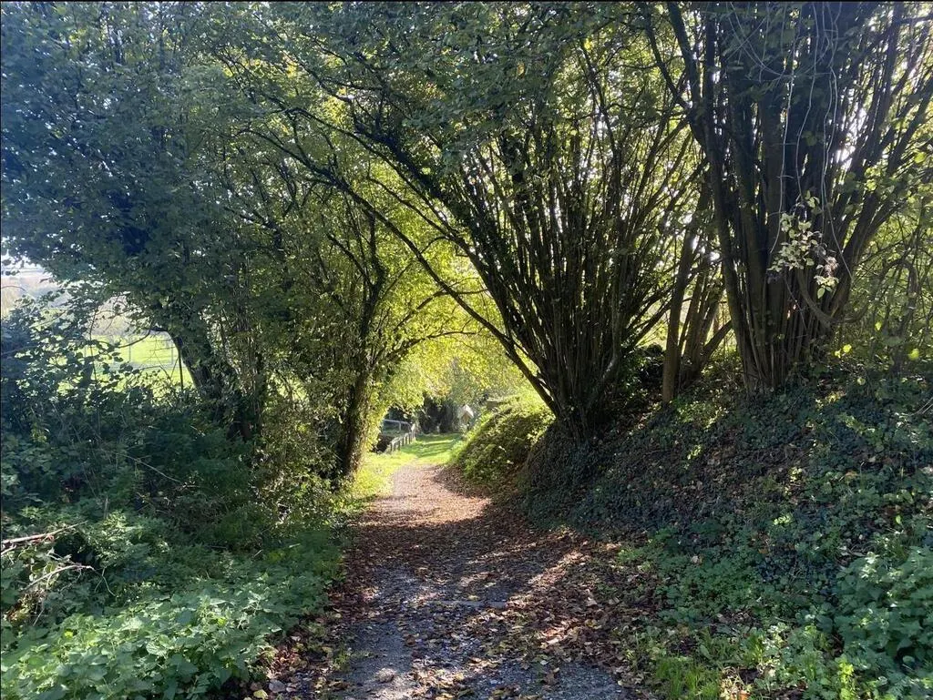 Après la voie de chemin de fer, le parcours emprunte un chemin large. Archives Yanne Boloh