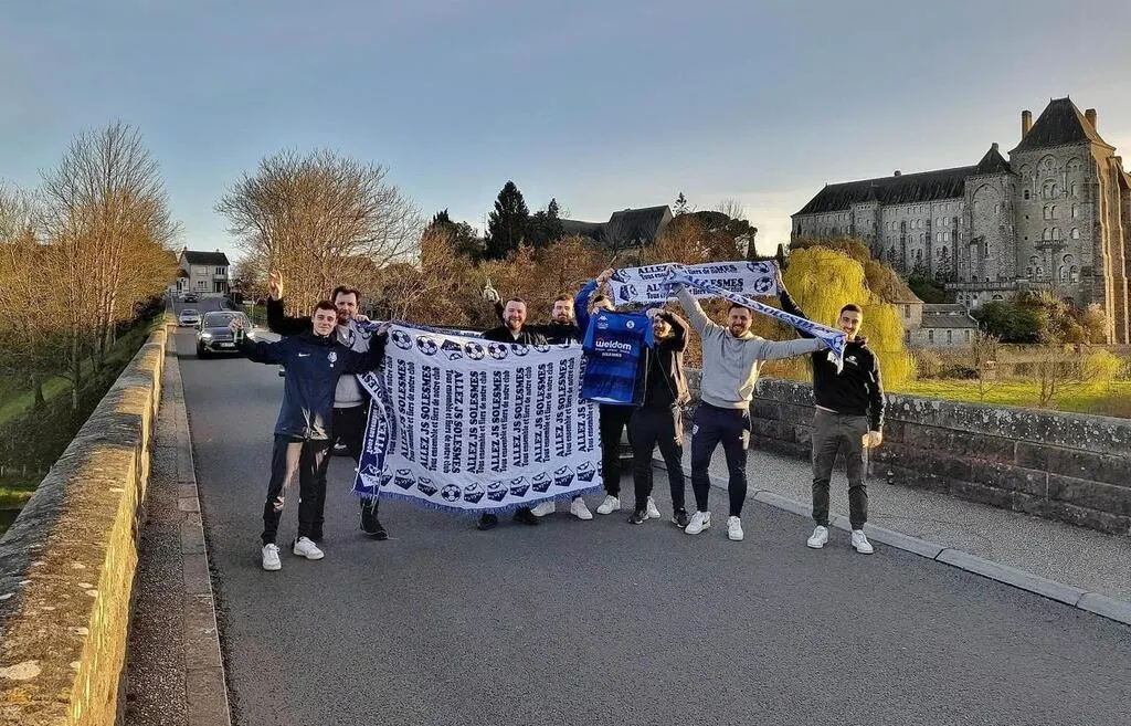 Le pont qui enjambe la Sarthe entre Juigné et Solesmes était blanc et bleu, dimanche 19 mars 2023. Les supporters solesmiens y ont fait la fête en posant fièrement avec les maillots et les écharpes aux couleurs de leur club, en fin d’après-midi, après la victoire de la JS Solesmes face à l’AS Juigné dans ce derby local. Les clichés, partagés sur la page Facebook du club solesmien, ont ravi les fans.