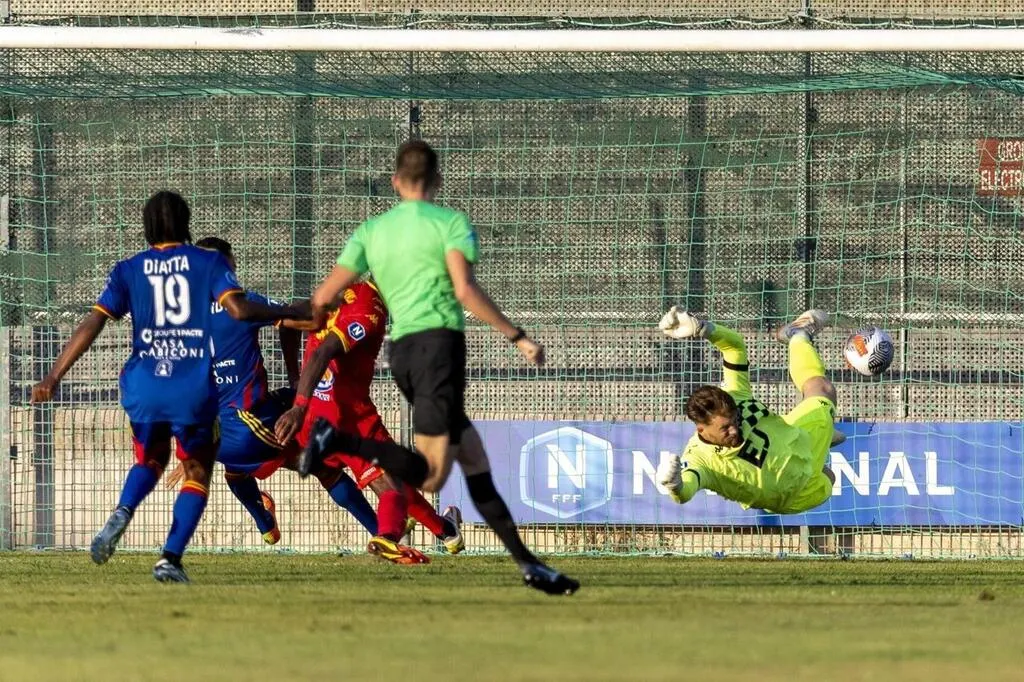 Augustin Delbecque a su faire rempart face aux attaquants de Marignane Gignac. © PQR / La Provence/MaxPPP