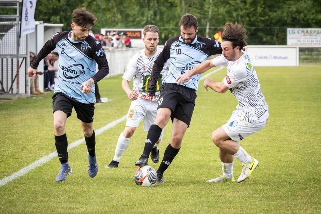Ici le samedi 10 mai dernier, lors du match face à l’ES Bonchamp, au stade André Conty, les JS Coulaines d’Antonin Jimenez (au centre), et d’Ilan Thebert (à gauche), s’apprêtent à recevoir un match amical du Mans FC. © Dominique Breugnot