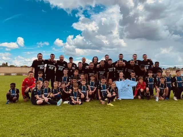 Les joueurs de tous âges de l’APB FC ont pu fêter l’accession de l’équipe senior en Régionale 2. © Le Maine Libre